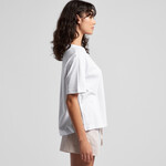 • Bound collar, boxy fit, hem splits at side seams, double needle hem, pre-shrunk to minimise shrinkage